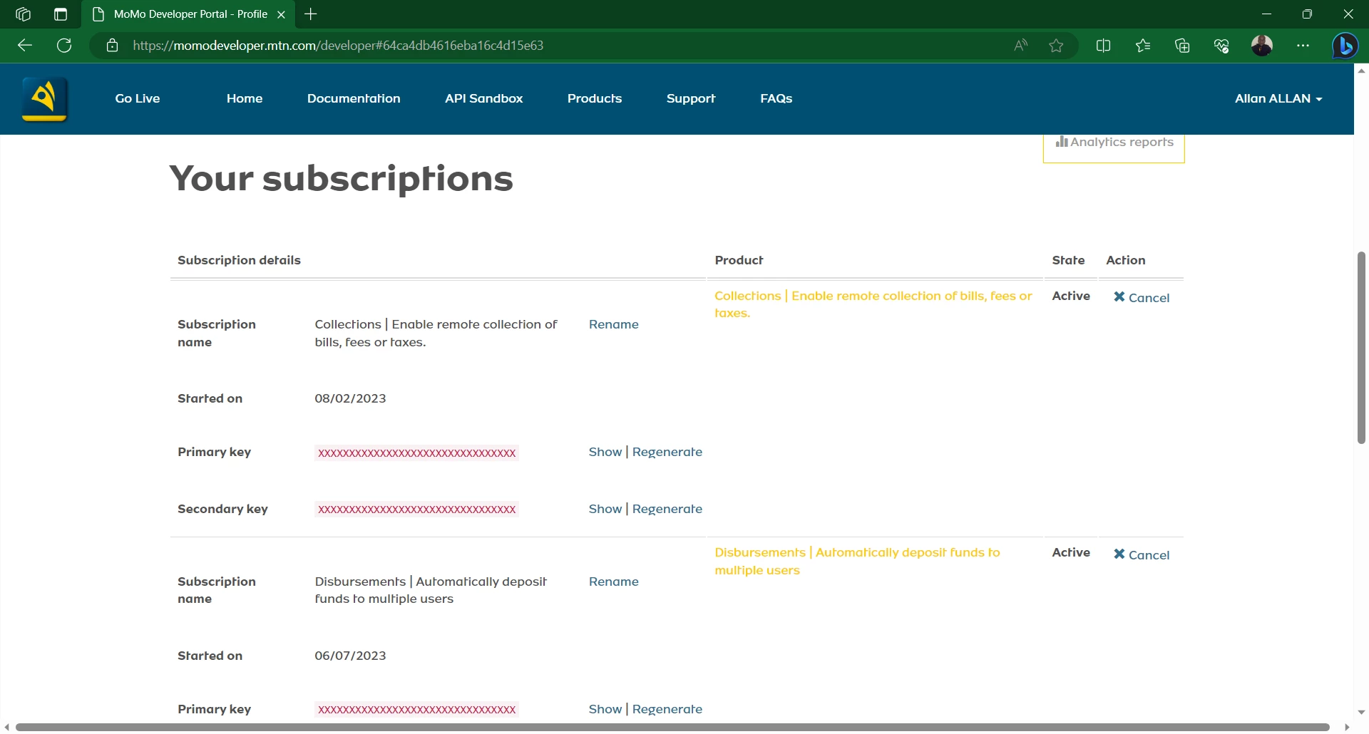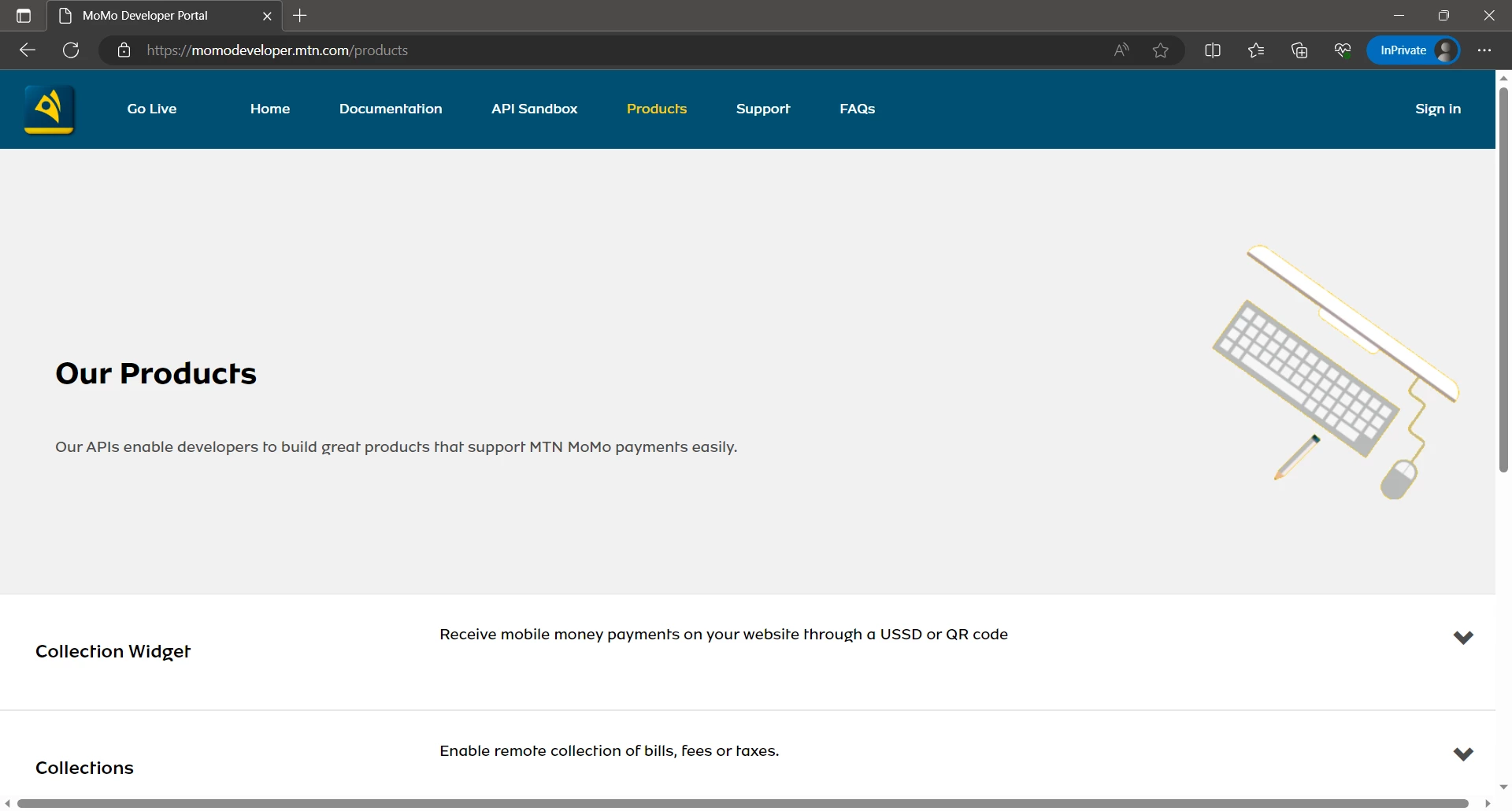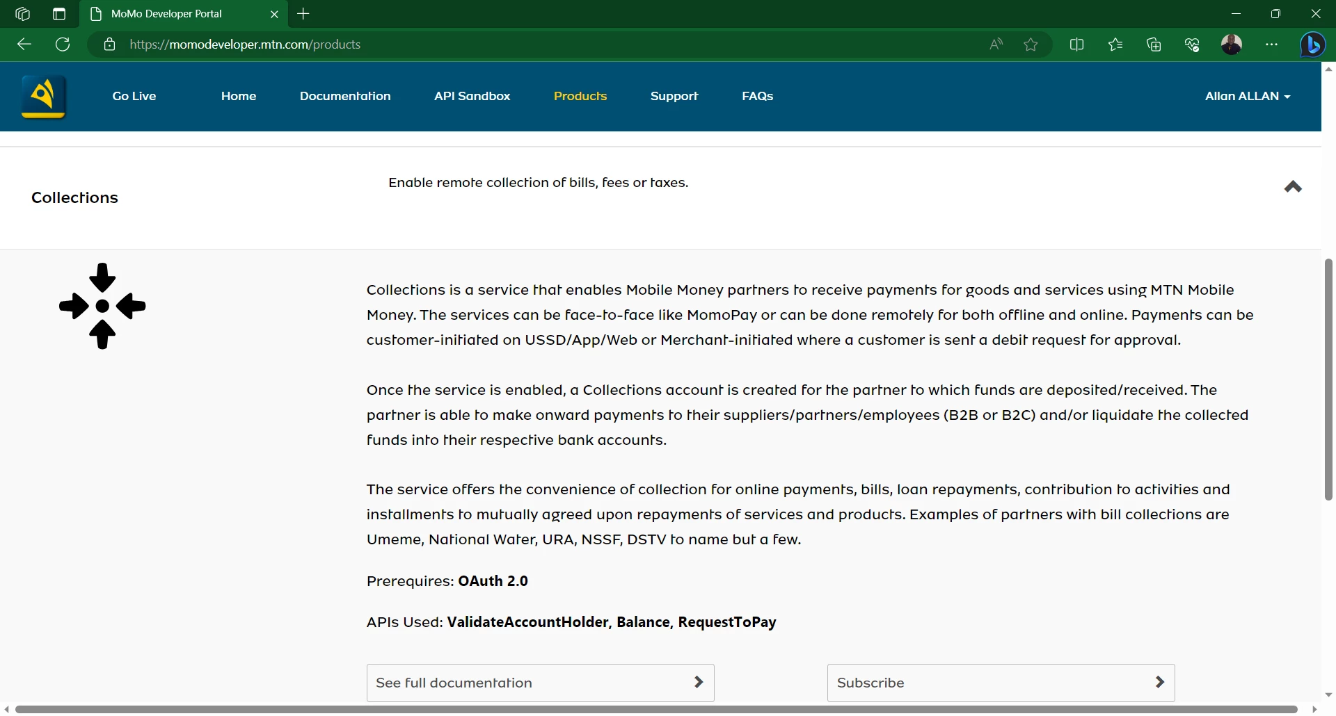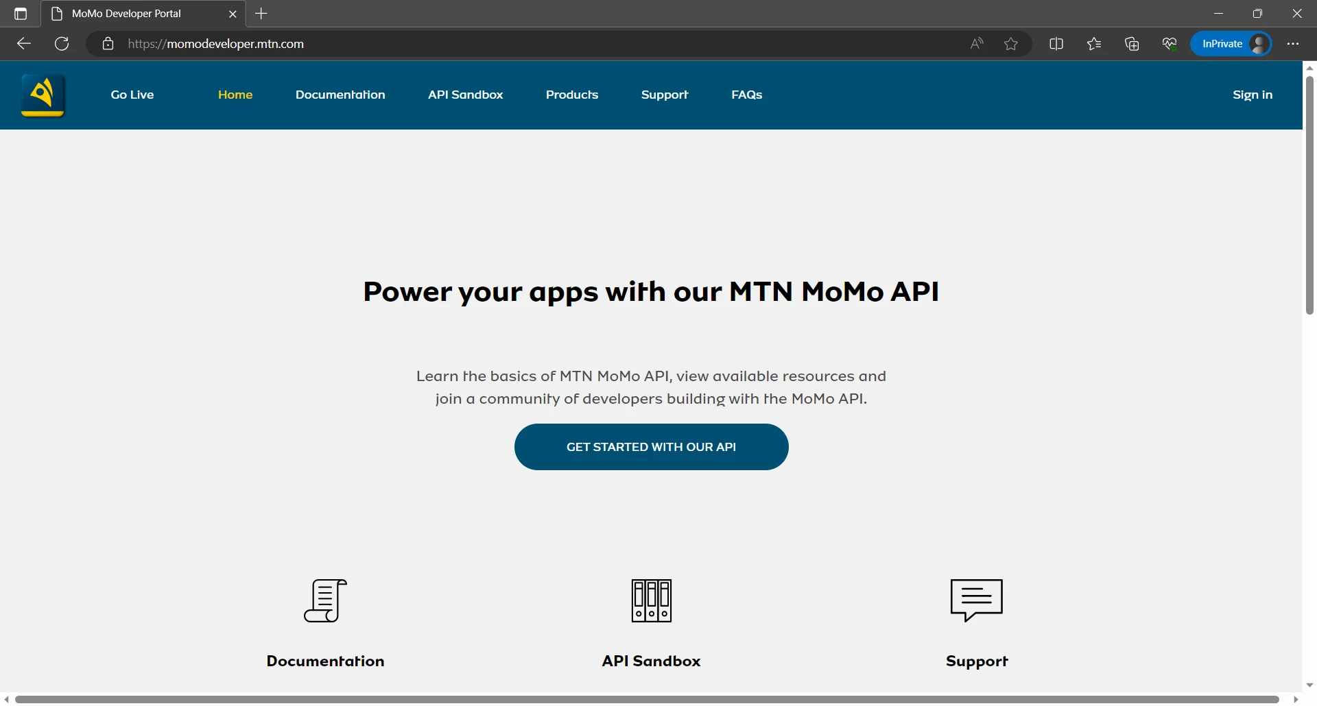 Sign in MoMo Developer Portal https://momodeveloper.mtn.com